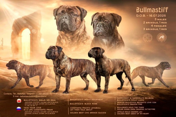 Предлагаются к продаже щенки бульмастифа высокого качества с элитной родословной рождения 16.07.25. тигрового и рыжего окрасов, кобели и суки. Редкое сочетание кровей ведущих питомников России, Канады и Америки. Родители – чемпионы и победители престижных выставок с пожизненным допуском в разведение. Щенки отлично выращены, имеют документы РКФ, клеймо, проведены вакцинация и необходимые обработки. Дополнительная информация, фото и видео щенков по запросу. Возможна доставка в большинство регионов России. Консультации опытного заводчика и сопровождение от щенка до чемпиона!
